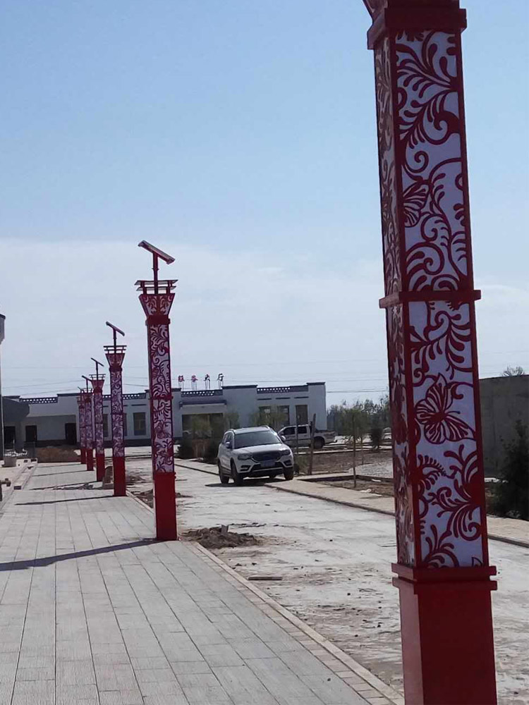 簡(jiǎn)介—— 蘭光照明甘肅武威太陽能景觀燈工程 ,主要采購我公司自主生產(chǎn)的造型景觀燈,燈體主體為中國紅,配有植物圖案,配合白色亞克力板,使得圖案更具有立體感覺。太陽能板采用的單晶板,配合高效膠體電池,增加使用壽命。
