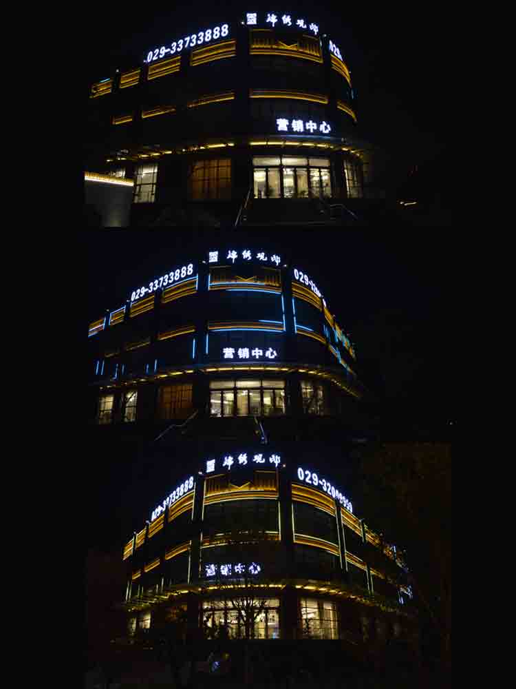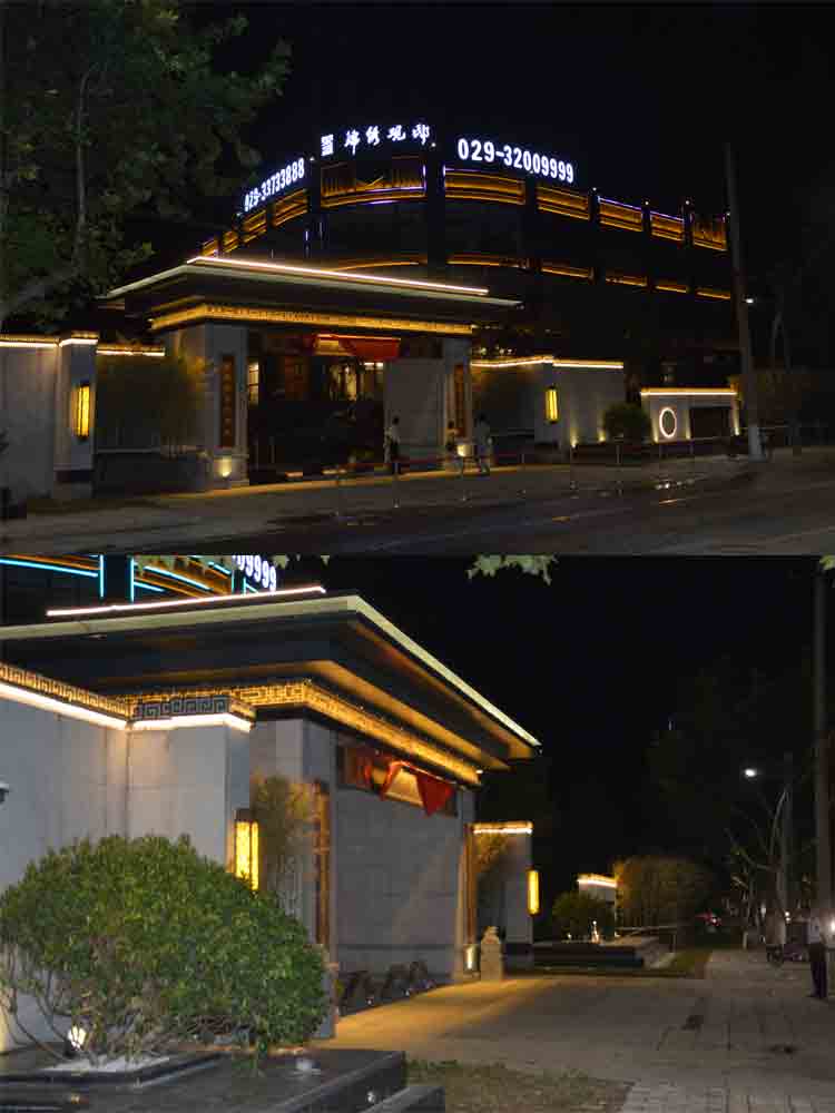2018 榮盛景秀觀邸售樓部亮化,蘭光設(shè)計師根據(jù)其榮盛景秀觀邸售樓部商業(yè)屬性,商業(yè)照明設(shè)計明亮而醒目,營造商業(yè)經(jīng)營的夜景氛圍。以靜態(tài)的暖色燈光將其打亮,凸顯雅致?!皹s盛景秀觀邸”標(biāo)志以高亮度的燈光,吸引顧客注意,增強商業(yè)宣傳力度。景觀燈造型與建筑外立面造型完美融合,晚上光斑效果與綠植景觀交相輝映,相映成趣!榮盛景秀觀邸的亮化設(shè)計施工,獲得了客戶的高度認可。