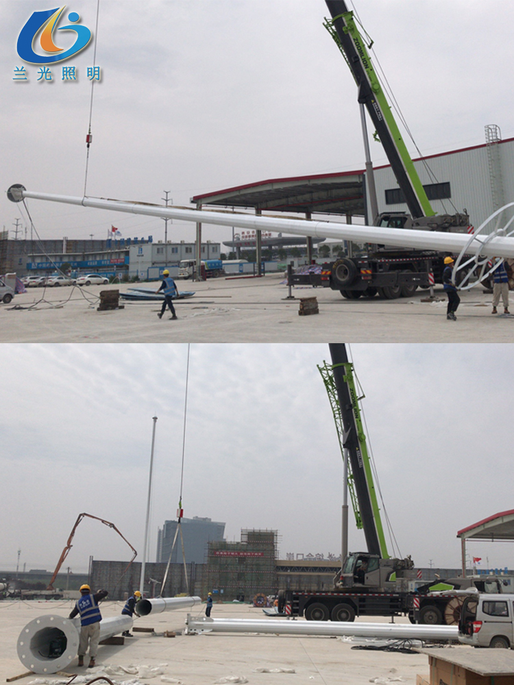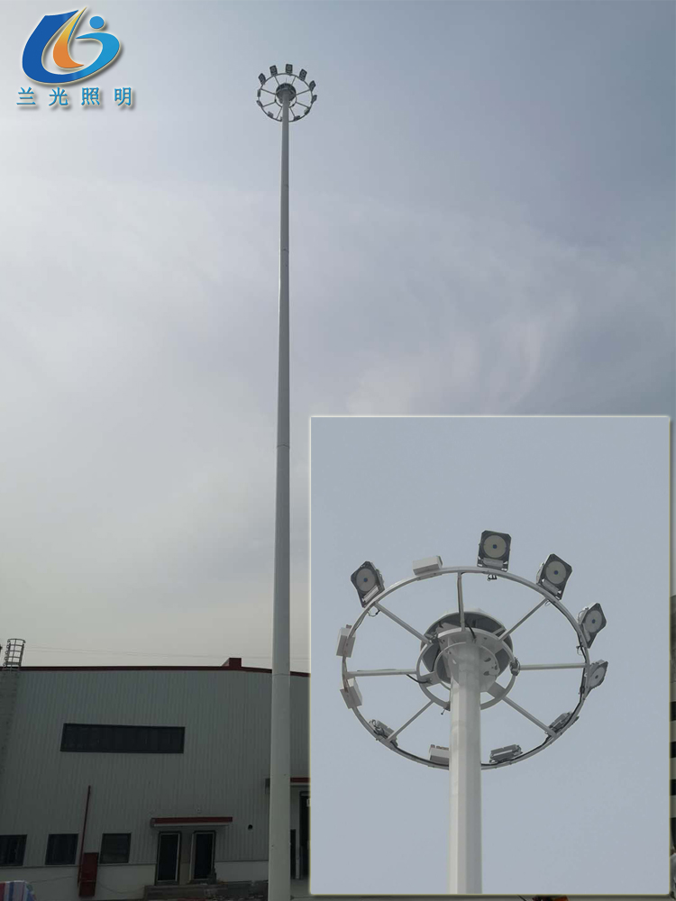 3.高桿燈頂部配設(shè)避雷針,所有連接部件為不銹鋼螺栓負(fù)載能力1000公斤。