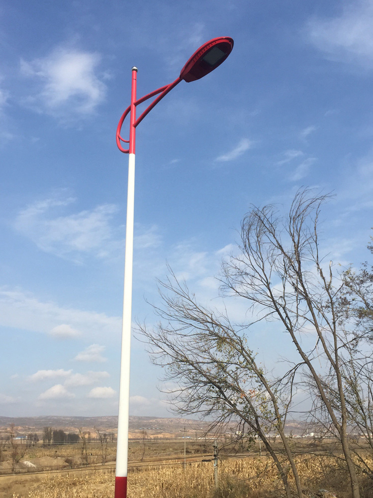 簡(jiǎn)介—— 陜西榆林市橫山縣泗源溝村農(nóng)村太陽(yáng)能路燈工程,泗源溝村保存著較為完整的鄉(xiāng)土文化,地處黃土高原與毛烏素沙漠接壤處,北望遼闊的沙漠,西靠雄厚的黃土高原之山脈,東臨著名的無定河。村莊采用的是我蘭光照明的6米高市電路燈,顏色為紅色為主,為村莊增添了不少喜慶氣氛。